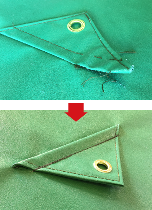シートが破れた、穴が空いた!ハトメが取れた、取れかかっている! 糸がほつれてしまった!三角ペケットが取れた、取れかかっている! 積荷が変わって寸法が合わなくなった! などなど、お困りごとがあれば何でもお気軽にご相談ください!